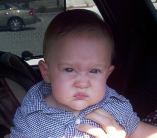 He used to smile at everyone. Now when they give him the “hoochy coochy coo”, he gives them this…