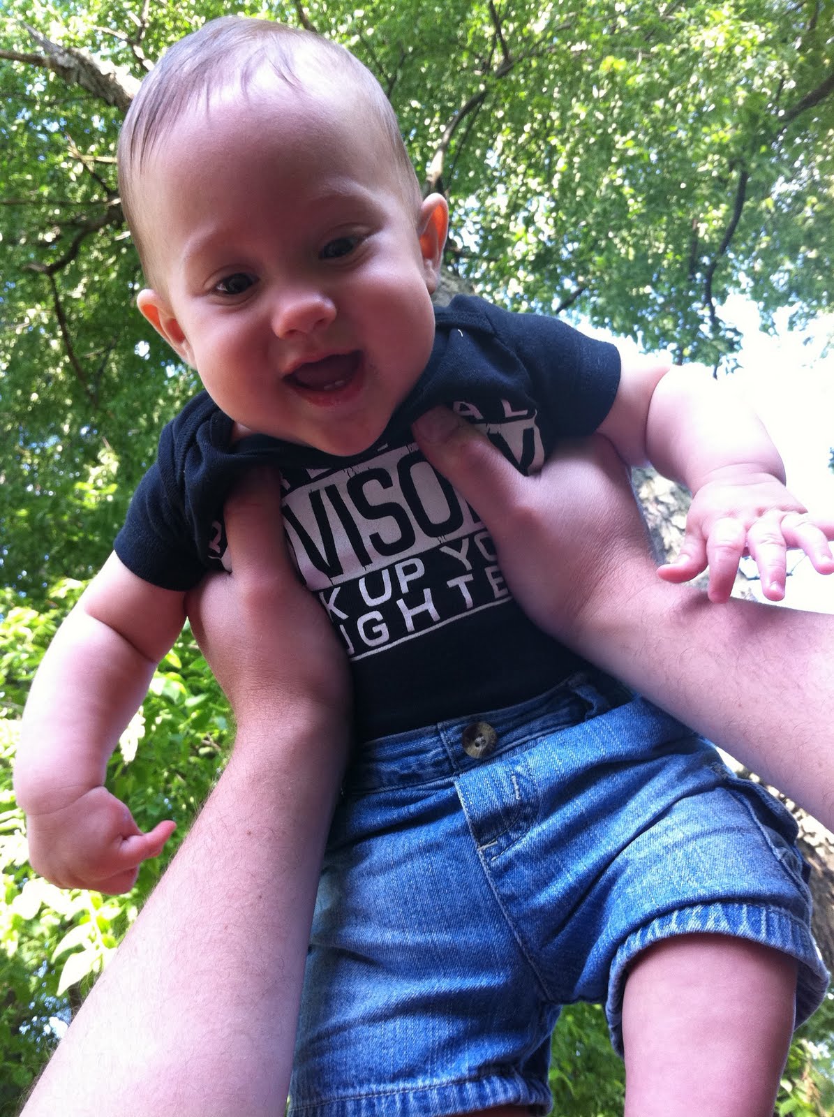 I can’t help but laugh when I think of all the planning and effort that went into choosing gifts for our baby registry, only to find out that all the kid needs are a few outfits, a place to sleep, something to push him around in, and a boob! Babies R Us didn’t mention that on their checklist. What a scam!