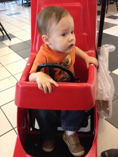 Our Pediatrician was right again when it came to Jake walking. Mama and I were a slight bit concerned with the fact that he wouldn’t take more than a step or two up until this last month. The Doctor said that once kids realize that they can get somewhere much faster by walking than crawling, they’ll take off. Boy, was he right! It seemed as though one morning Jake literally hit the ground running! Now, he rarely crawls unless it’s for something close by.